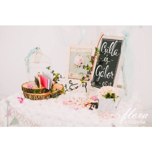 Vintage jellegű szrkésfehér keretben elhelyezett kréta tábla, amelynek felülete egyedi vendégfogadó felirattal látható el. Tökéletes étterem bejáratához, szertartás helyszínére stb. Felárral egyedi felirattal is igényelhető.