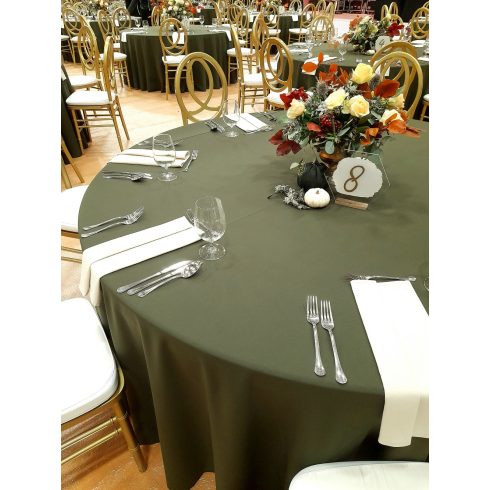 Matt felületű éttermi alaptextília. Lágy esésű körabrosz, nagyon jól illeszthető bármilyen stílusú esküvői dekorációhoz vagy helyszínhez. A körabrosz átmérője 325 cm, így tökéletesen passzol 175/180/185 cm-es körasztalokra. Áraink a tisztítási költséget tartalmazzák, a helyszíni felrakást nem.